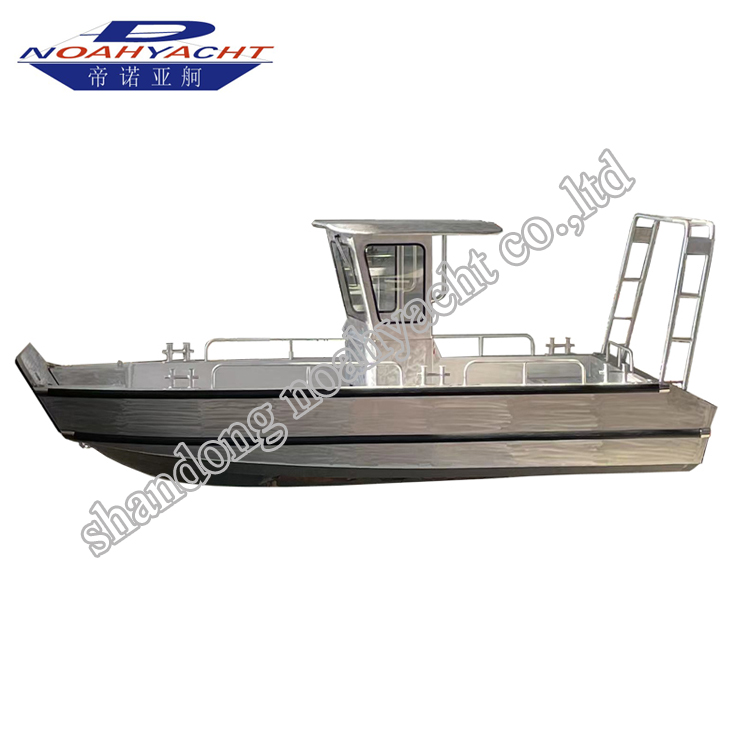 鋁合金登陸艇可以用作駁船或者救援船,工作艇。前面可開合的斜坡設(shè)計(jì),可以進(jìn)出ATVS,叉車等,也可以作為駁船用于載貨。廣泛用于崎嶇、偏僻的海岸線較長的